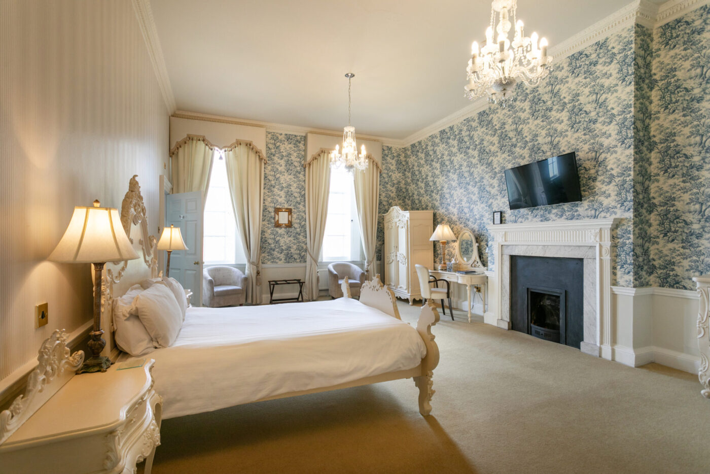 Fabulous bedrooms with fine views of the grounds. Most exquisite furnishings and delightful bathrooms with separate shower and bath with central taps. Luxurious décor with spacious layout including options to request a four-poster bed, lake view, or adjoining sitting room. Always popular for guests looking for a special stay.