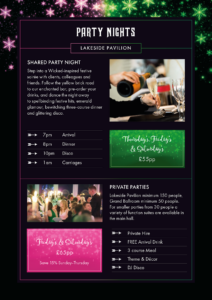 Join other businesses in our Lakeside Pavilion for a high-octane evening. Expect emerald glamour, a glittering disco, and a bewitching three-course dinner.