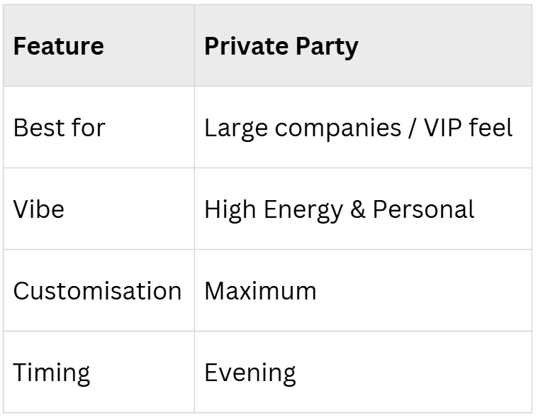 - Budget-Friendly: Get the “big party” feel at a per-head cost that keeps the finance department happy.